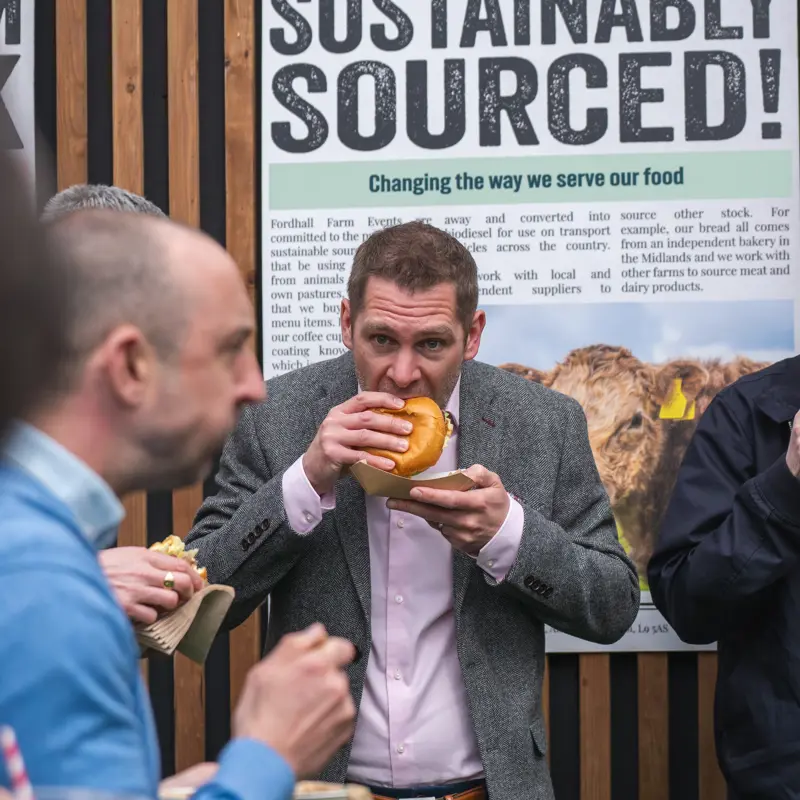 We are proud to choose partners who share our vision of a more sustainable future, such as Fordhall Farm's who provide us with a range of concession units at the Randox Grand National Festival with British organic produce being served and promoting a farm to fork concept.